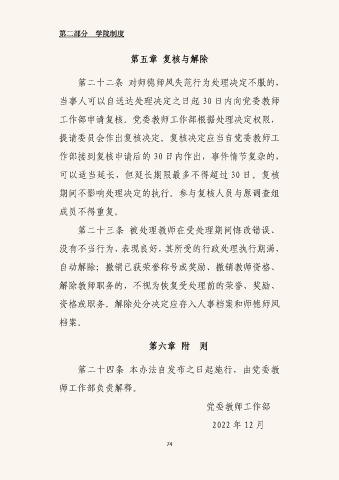 第二十二条 对师德师风失范行为处理决定不服的,