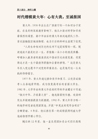 1982 年,大学毕业的黄大年在给同学的毕业赠言中写道:
